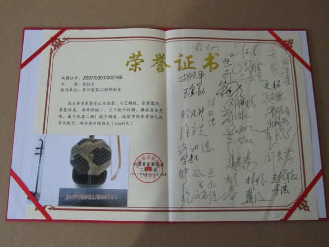 二胡制作大師丁家彭先生1949年出生樂器世家,17歲隨其祖父學琴藝,并深得精髓,其聰穎好學,悉心鉆研與 探求二胡制作,博得同行的欽佩贊許,更得了許多知名演奏家的稱贊,充分認識到二胡制作每個環(huán)節(jié),都對二胡制作都有影響力,因此對二胡的選材,選料,蟒皮都十分嚴格,二胡整體穩(wěn)定性良好,環(huán)境干擾影響極小。